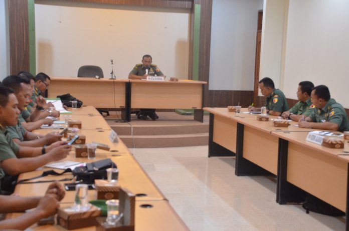 Surabaya, nawacita – Penrem-Korem 084/Bhaskara Jaya melalui Staf Operasi menyelenggarakan kegiatan pengecekan produk-produk yang harus ada dan dilaksanakan oleh Kodim jajaran, baik berupa rencana, laporan dan produk pendukung lainnya, bertempat di Ruang Data Makorem 084/Bhaskara Jaya, Selasa (19/3/19).