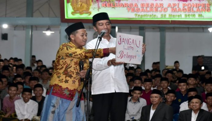 Magelang, nawacita – Silaturahmi dengan para kiai, ulama, dan santri sudah sering dilakukan Presiden Joko Widodo. Setiap kunjungan pun selalu dihiasi kejadian unik dan menarik, termasuk saat Presiden mengunjungi Asrama Perguruan Islam (API) Pondok Pesantren Salafi Induk, Tegalrejo, Kabupaten Magelang, Sabtu, 23 Maret 2019.