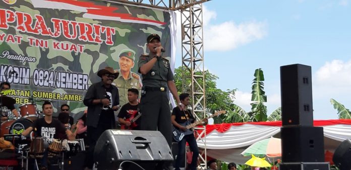 Bondowoso, nawacita – Acara penutupan TMMD ke 104 Kodim 0824/Jember terasa estimewa, dimana dari panggung hiburan yang sudah disiapkan di lapangan ds. Gunung Malang Kec. Sumber Jambe terdengar lagu Mirashantika yang siang hari itu dinyanyikan oleh Letkol inf Tarmuji, S,Ag yang sehari-hari menjabat Dandim 0822/Bondowoso. jember 27/3/1019.