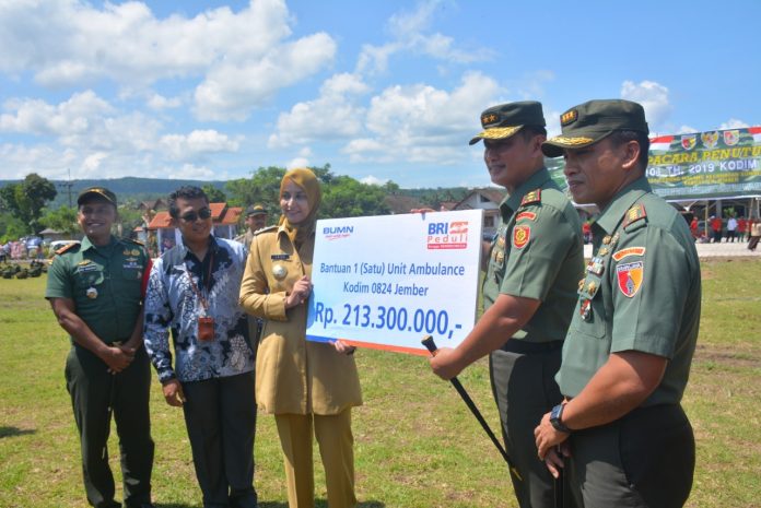 Penyerahan Ambulance tersebut dilakukan olah Perwakilan dari Bank Rakyat Indonesia (BRI) Cabang Jember Teguh Agung Prihadi Kepada Bupati Jember dr Hj Faida MMR selanjutnya dari Bupati Jember diserahkan kepada Panglima Divisi Infanteri (Pangdivif) 2 Kostrad yang selanjutnya diserahkan kepada Komandan Kodim 0824/Jember.