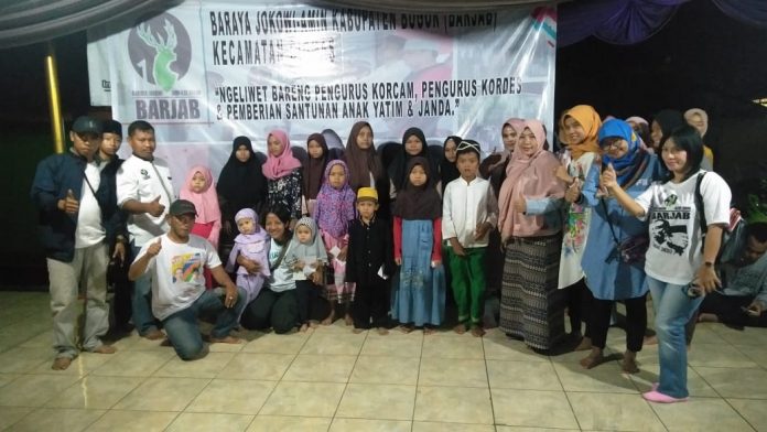 “Kami relawan BARJAB Kecamatan Ciomas menyatakan bersyukur kepada Allah SWT. Oleh karena itu, kami menyantuni anak anak Yatim dan para Janda di Ciomas, Bogor,” terangnya.