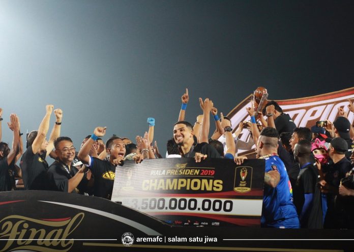 Malang, Nawacita – Ketua Steering Committee (SC) Piala Presiden 2019 Maruarar Sirait mengaku kagum melihat animo penonton duel Arema FC vs Persebaya Surabaya pada laga final leg kedua ajang ini yang digelar di Stadion Kanjuruhan, Malang, Jumat (12/4/2018). Dalam pertandingan itu, akhirnya Arema dinobatkan menjadi juara setelah mengalahkan Persebaya 2-0 dengan agregat 4-2.