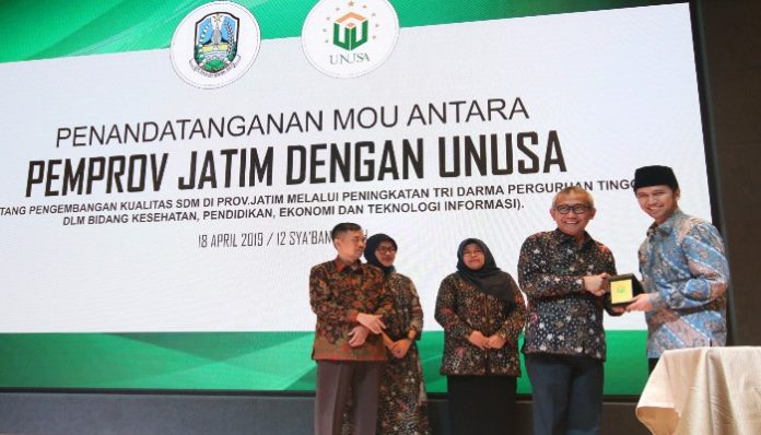 “Tadi kita juga sudah ada kesepakatan bersama antara Pemprov Jatim dan UNUSA salah satunya dalam upaya pengembangan program one pesantren, one product,” terangnya.