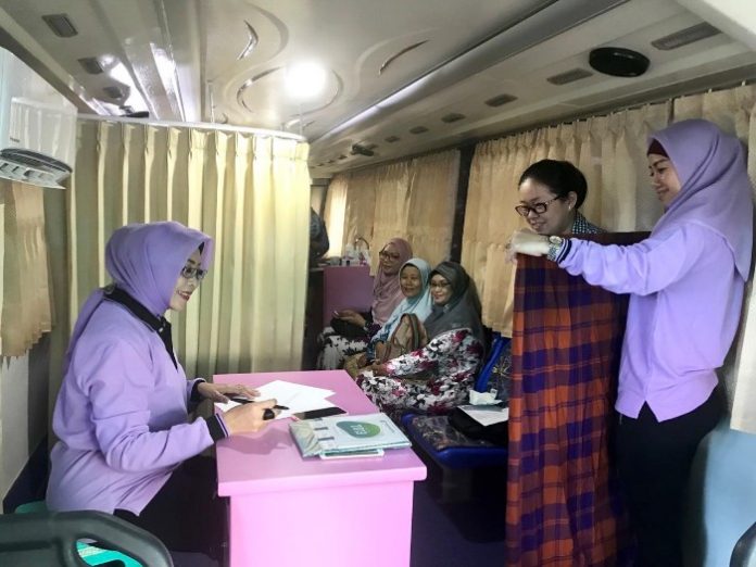 Pemeriksaan yang berlangsung mulai pukul 08.00-12.00 WIB berjalan lancar dan tertib. Di dalam bus, para peserta ditangani oleh tim medis yang sudah berpengalaman. Sambil mengantre peserta diberi suguhan jajanan traditional dan fruit craving oleh pihak Hotel Mercure.