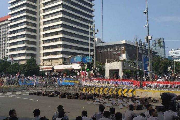 JAKARTA, Nawacita — Situasi di perempatan Jalan MH Thamrin, Jakarta, tepatnya di depan Gedung Bawaslu mulai berangsur kondusif selepas waktu Subuh, Rabu (22/5). Selain kondusif, terlihat masyarakat mulai melintas untuk beraktivitas.