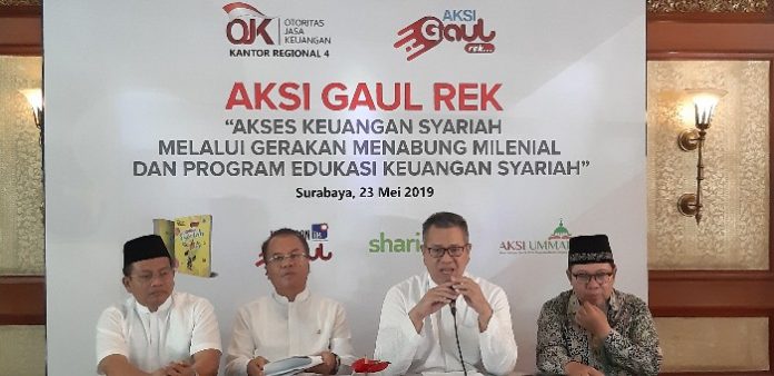Surabaya, 23 Mei 2019. – Otoritas Jasa Keuangan Regional 4 Jawa Timur (OJK KR4) pada hari Kamis, 23 Mei 2019 menyelenggarakan kegiatan Akses Keuangan Syariah Melalui Gerakana Menabung Milenial dan Program Edukasi Keuangan Syariah (AKSI GAUL REK) yang bertempat di Hotel JW Marriot Surabaya dan dihadiri oleh 250 (dua ratus lima puluh) peserta yang terdiri dari pelajar SLTA dan pegiat keuangan syariah di Jawa Timur.