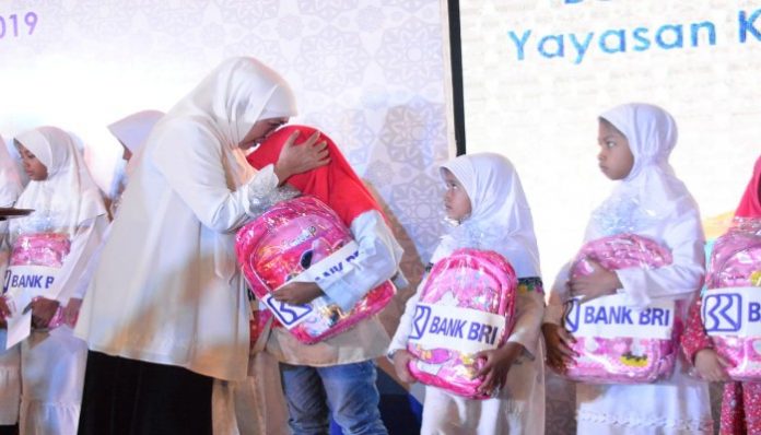 Surabaya, Nawacita – Gubernur Jawa Timur Khofifah Indar Parawansa kembali berbagi kebahagiaan di bulan Ramadhan 1440 H bersama para yatim piatu dan dhuafa di Yayasan Khadijah, Jl.Jend Ahmad Yani 2-4, Wonokromo, Surabaya, Sabtu (26/05) sore.
