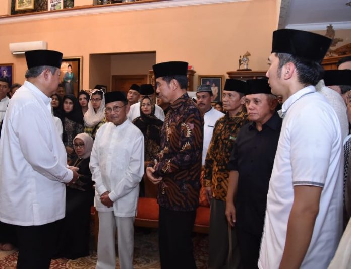 Bogor, Nawacita – Presiden Joko Widodo dan Ibu Negara Iriana Joko Widodo pada Sabtu malam, 1 Juni 2019, melayat ke kediaman Susilo Bambang Yudhoyono (SBY), Presiden ke-6 Republik Indonesia di kawasan Puri Cikeas, Bogor, Jawa Barat.