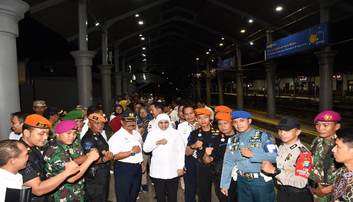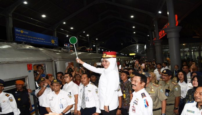 Surabaya, Nawacita – Gubernur Jawa Timur Khofifah Indar Parawansa memberangkatkan mudik gratis dengan menggunakan kereta api di Stasiun Gubeng, Surabaya, Senin (03/06) sore. Mudik gratis yang diberangkatkan kali ini yaitu Kereta Api Penataran relasi Surabaya Blitar (via Malang) dan Kereta Api Dhoho relasi Surabaya – Blitar (via Kertosono).
