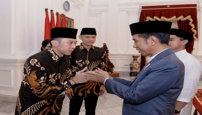 Jakarta, Nawacita – Selepas menerima dan mendatangi masyarakat yang hendak bersilaturahmi, Presiden Joko Widodo kedatangan Agus Harimurti Yudhoyono (AHY) dan Edhie Baskoro Yudhoyono (EBY). Keduanya datang dengan didampingi keluarga, Annisa Pohan dan Aliya Rajasa, yang tiba sekira pukul 11:55 WIB di Istana Merdeka, Jakarta.