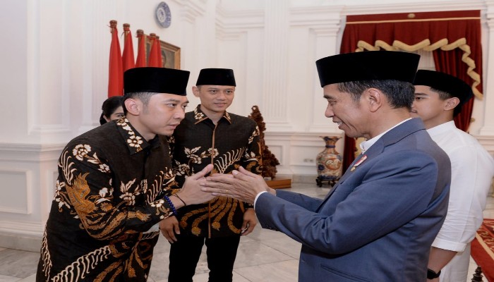 Sesaat setelah diterima, Presiden dan Ibu Iriana langsung menyalami keempatnya sekaligus menyampaikan ucapan Idulfitri antara sesama mereka. Dalam kesempatan itu, AHY menyampaikan permohonan maaf atas kedatangannya menjelang tengah hari karena terlebih dahulu berziarah ke makam almarhumah Ibu Ani Yudhoyono.