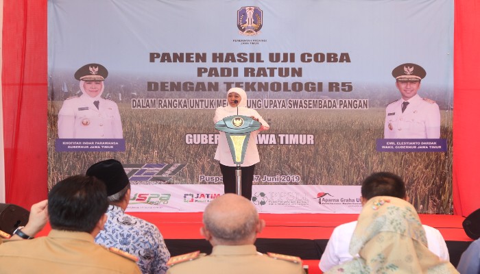 “Pengurangan penggunaan pupuk anorganik pada padi ratun teknologi R5 juga sangat membantu daya dukung lahan dan alam kita, sehingga ekosistem akan terjaga,” tukas Khofifah sembari mengimbuhkan bahwa penggunaan padi jenis ini kedepan juga bisa mengurangi pemberian subsidi pupuk.