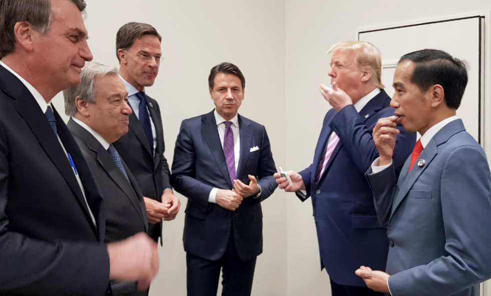 Para kepala negara/kepala pemerintahan itu di antaranya Presiden Amerika Serikat Donald Trump, PM Jepang Shinzo Abe, Putra Mahkota Kerajaan Saudi Mohammad bin Salman, PM Kanada Justin Trudeau, Presiden Turki Recep Tayyip Erdogan, PM Australia Scott Morrison, PM Belanda Mark Rutte, Presiden Prancis Emmanuel Macron, PM Italia Giuseppe Conte, PM Inggris Theresa May, PM India Narendra Modi dan Presiden Spanyol Pedrosan Chez.