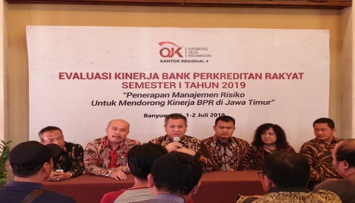 Banyuwangi, Nawacita – 1 Juli 2019. – Kantor Otoritas Jasa Keuangan (OJK) Regional 4 Jawa Timur mengadakan Evaluasi Kinerja BPR periode Semester I tahun 2019 dan Workshop Penerapan Manajemen Risiko BPR pada hari Senin, 1 Juli 2019 bertempat di Hotel Ketapang Indah, Banyuwangi, yang mengangkat tema “Penerapan Manajemen Risiko untuk Mendorong Kinerja BPR di Jawa Timur” Pertemuan tersebut dihadiri oleh Direksi dan Komisaris dari 112 BPR se Jawa Timur, merupakan salah satu wujud konkrit concern OJK terhadap perkembangan industri BPR di Provinsi Jawa Timur yang diselenggarakan secara rutin setiap tahun. Dalam kegiatan evaluasi ini, OJK memberikan pemaparan mengenai perkembangan kinerja BPR sampai dengan triwulan I tahun 2019 serta memberikan recycling program berupa capacity building kepada Pengurus BPR dalam bentuk Sosialisasi SEOJK No.1/SEOJK.03/2019 tentang Penerapan Manajemen Risiko Bagi BPR oleh OJK dan workshop Penerapan Manajemen Risiko melalui sharing knowledge oleh nara sumber dari salah satu BPR yang telah menerapkan manajemen risiko.