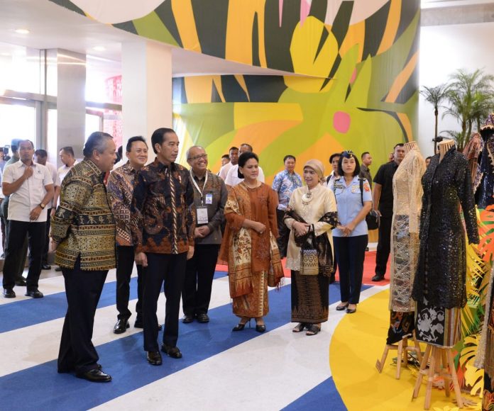Jakarta, Nawacita – Presiden Joko Widodo membuka pameran bertajuk Karya Kreatif Indonesia 2019 di Hall A, Jakarta Convention Center, Senayan, Jakarta, pada Jumat, 12 Juli 2019. Pameran yang menyuguhkan tema “Mendorong Pertumbuhan Ekonomi Melalui UMKM Go Export dan Go Digital” ini diselenggarakan oleh Bank Indonesia (BI) dan menjadi kegiatan rutin tiap tahunnya.