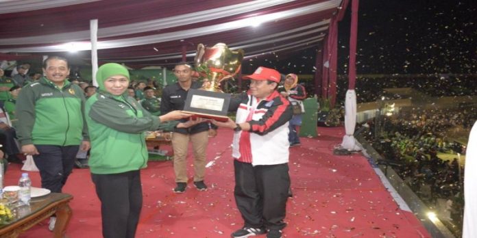 Gubernur Khofifah Serahkan Piala Bergilir kepada Kota Surabaya sebagai Juara Umum Porprov Jatim VI