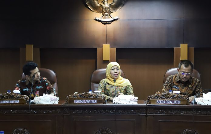 Surabaya, Nawacita – Gubernur Jawa Timur, Khofifah Indar Parawansa memimpin rapat Koordinasi Optimalisasi Kinerja dan realisasi Anggaran Tahun 2019 bersama seluruh Kepala Organisasi Perangkat Daerah (OPD), serta Rumah Sakit (RS) dilingkup Pemprov Jatim, di Kantor Gubernur Jatim, Jumat (19/7) siang.