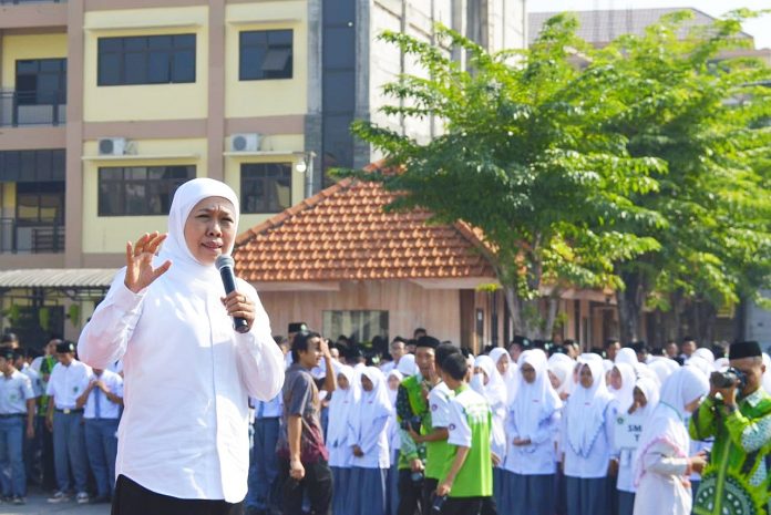 Sidoarjo,Nawacita – Memasuki tahun ajaran baru sekolah 2019/2020, Gubernur Jawa Timur Khofifah Indar Parawansa mengingatkan kepada siswa baru Yayasan Pendidikan Ma’arif (YPM) agar memahami dan mengamalkan prinsip dasar empat pilar bangsa yaitu Negara Kesatuan Republik Indonesia (NKRI) , Pancasila, UUD 1945 serta Bhinneka Tunggal Ika . Karena YPM terafiliasi dengan lembaga pendidikan NU maka harus ditanamkan juga nilai- nilai Ahlu Sunnah Wal Jamaah (Aswaja) yaitu sebuah metodologi pemahaman keagamaan yang mengajarkan keseimbangan, keadilan, moderasi dan toleransi.