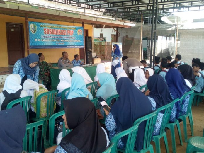 Kegiatan sosialisasi ini didampingi oleh koordinator kegiatan non Program yang menaunginya yaitu Kapten inf supriadi. yang keseharianya menjabat sebagai pasi ter kodim sampang.Pelaksanaan yang diselenggarakan pagi tadi sekitar pkl. 09.19 sampai dengan pkl 12.00 Wib tidak hanya dihadiri dominan oleh mereka yang sudah berkeluarga namun di hadiri siswa dan siswi SMP Al nur . Memang, warga desa karang anyar. ini termasuk angka yang tinggi dalam pernikahan usia muda.