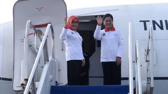 Dalam penerbangan tersebut, keduanya turut didampingi oleh sejumlah istri menteri Kabinet Kerja yang tergabung dalam Organisasi Aksi Solidaritas Era Kabinet Kerja (OASE-KK).