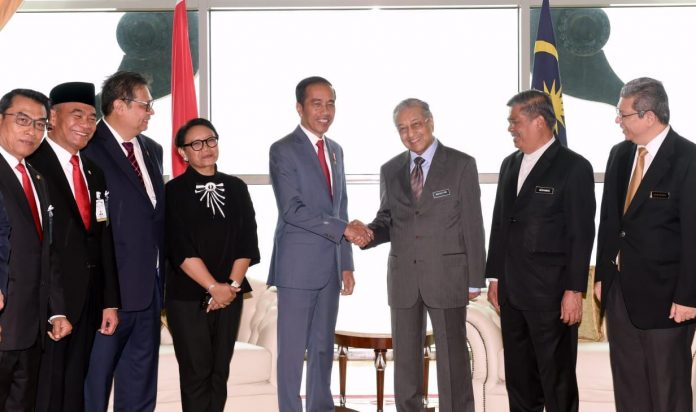 Kedatangan Presiden Jokowi itu disambut langsung oleh Perdana Menteri (PM) Mahathir Mohamad. Keduanya tampak bersalaman dengan hangat.