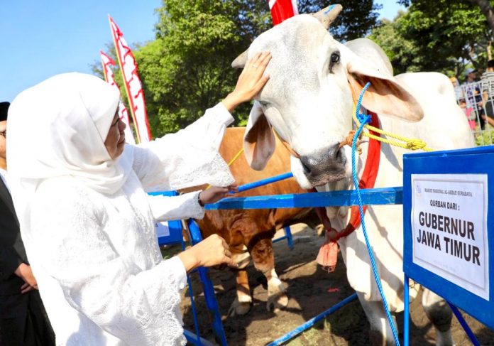 Dengan berkurban, jelasnya, selain meningkatkan keimanan dan ketaqwaan juga menunjukkan kedermawanan seseorang. Daging kurban diberikan kepada siapapun yang membutuhkan, tidak mengenal agama, kelompok, dan asal usul daerah.”Secara tidak langsung juga meningkatkan rasa persaudaraan, keshalehan dan solidaritas antar sesama secara substantif,” jelas Gubernur Jatim.