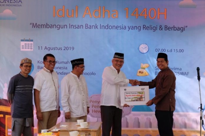 Surabaya , Nawacita – Komitmen Bank Indonesia untuk terus berperan dalam pengembangan ekonomi, menjaga kestabilan harga, serta pemberdayaan masyarakat terlihat dalam kegiatan Hari Raya Idul Adha 1440 H Kantor Perwakilan Bank Indonesia (KPw BI) Provinsi Jawa Timur di komplek perumahan dinas Bank Indonesia Jl. Jemur Andayani Surabaya (11/08).