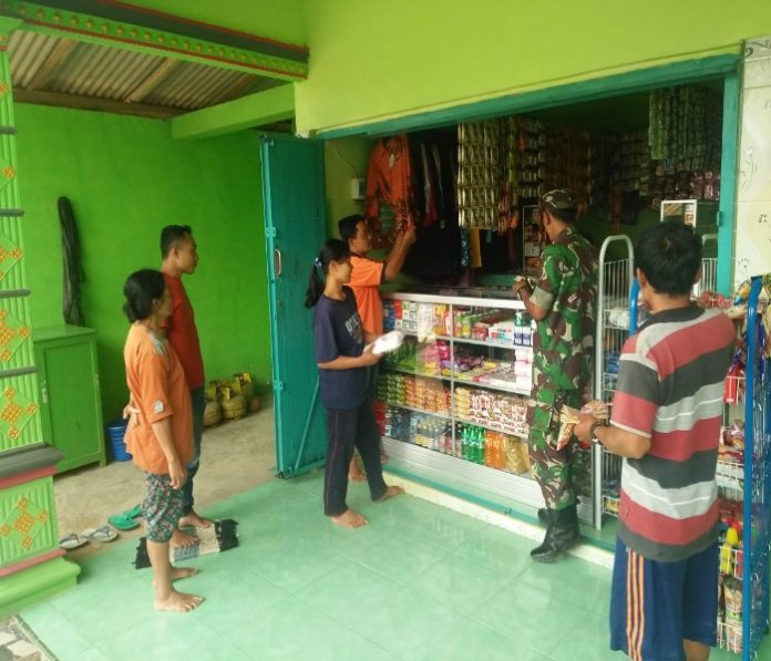 Saat Serda Purwanto ke kios Wiji yang jalan depan kiosnya dilewati pembangunan rabat, ingin membeli rokok, tiba-tiba muncul Sunarti dan beberpa warga Desa Semurup ke warung Wiji, Senin (12/8/19).