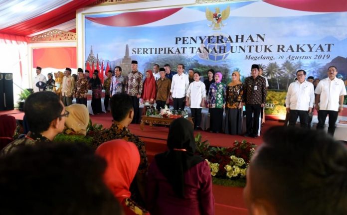 Nawacita – Sebanyak 5.000 pemilik bidang tanah dari Kabupaten Magelang, Jawa Tengah, hari ini memperoleh sertifikat atas tanah yang mereka miliki. Di Stadion Gemilang, Kecamatan Mertoyudan, Kabupaten Magelang, pada Jumat, 30 Agustus 2019, Presiden Joko Widodo menyerahkan langsung ribuan sertifikat tersebut sebagai bagian dari kunjungan kerja Presiden ke Provinsi Jawa Tengah sejak Kamis kemarin.
