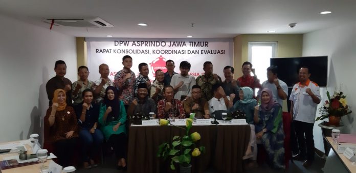 Surabaya,Nawacita – Dewan Pimpinan Wilayah Jawa Timur Asosiasi Pengusaha Bumiputera Indonesia atau yang lebih dikenal dengan Asprindo Hari ini menggelar Rapat Konsolidasi, Koordinasi dan evaluasi, dan dilanjutkan dengan Pembentukan susunan pengurus dewan pimpinan Asosiasi Bumi Putera Indonesia (Asprindo) Jatim yang Baru periode 2018 – 2023, tujuan adalah membentuk kesamaan visi dan misi guna membangun daya saing dalam dunia usaha, Rapat ini berlangsung di Hotel Gunawangsa Surabaya, Sabtu (31/08) Pagi.
