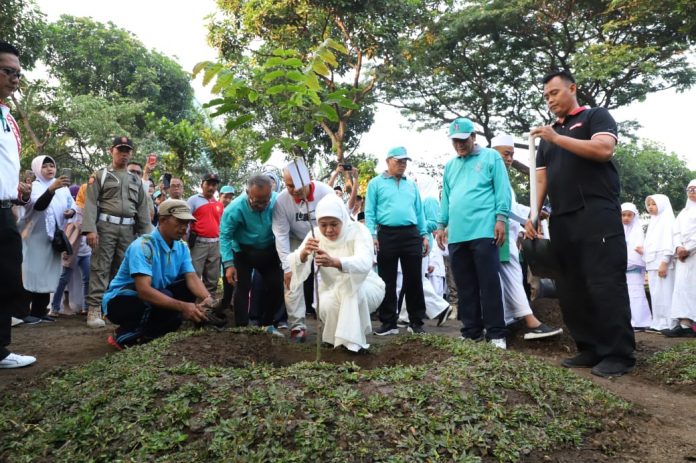 Usai menanam bibit Matoa, wanita yang pernah menjabat sebagai Menteri Sosial RI ini juga berkesempatan melepas peserta Jalan Sehat Bersholawat dalam rangka memperingati Tahun Baru 1 Muharram 1441 H yang juga merupakan rangkaian Peringatan Hari Besar Islam Provinsi Jatim, di halaman luar Masjid Al-Akbar Surabaya.