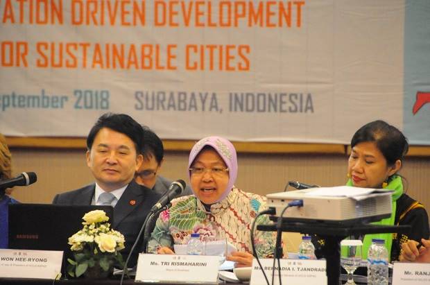 SURABAYA Nawacita — Wali Kota Surabaya Tri Rismaharini menjadi pembicara dalam forum Bridge For Cities 4.0 yang digelar oleh United Nations Industrial Developmen Organization (UNIDO) atau Organisasi Pengembangan Industri Perserikatan Bangsa-Bangsa pada Selasa (3/9). Kepala Bagian Humas Pemerintah Kota (Pemkot) Surabaya M. Fikser mengatakan, ini merupakan kali pertama Risma menjadi pembicara di forum UNIDO.
