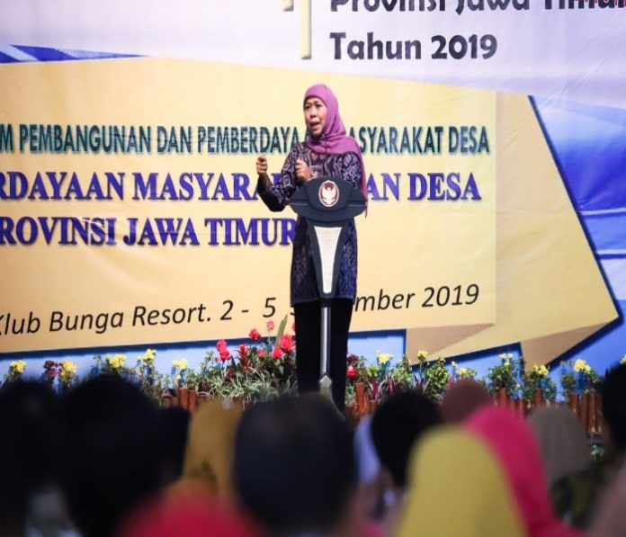 “Jika SDM kita unggul, masyarakat berdaya maka Jawa Timur akan berkemajuan. Maka intervensi pembangunan di pedesaan di Jatim harus fokus terutama untuk menurunkan kemiskinan dan stunting ,” ujar Gubernur Jatim Khofifah Indar Parawansa saat membuka Rapat Koordinasi (Rakor) Program Pembangunan dan Pemberdayaan Masyarakat Desa (P3MD) tahun 2019 yang dilaksanakan di Klub Bunga Hotel and Resort, Kota Batu, Selasa (3/9).