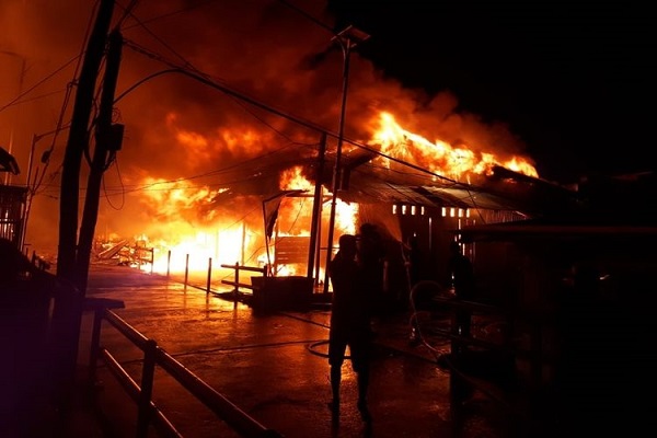 TIMIKA, Nawacita – Kebakaran besar terjadi di kota seribu papan, Kabupaten Asmat, Papua, Senin (17/9/2019). Diperkirakan lebih dari seratus rumah maupun kios milik warga hangus dilahap si jago merah.