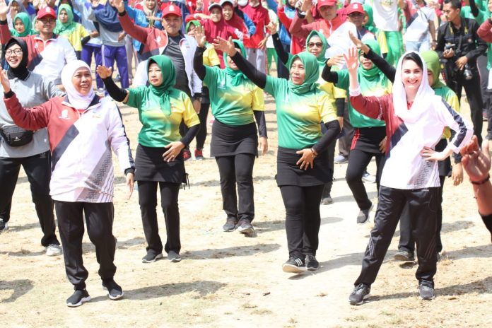 Acara yang diselenggarakan dengan tema “Ayo Olahraga Dimana Saja Kapan Saja itu dihadiri Gubernur Jatim Khofifah Indar Parawansa.