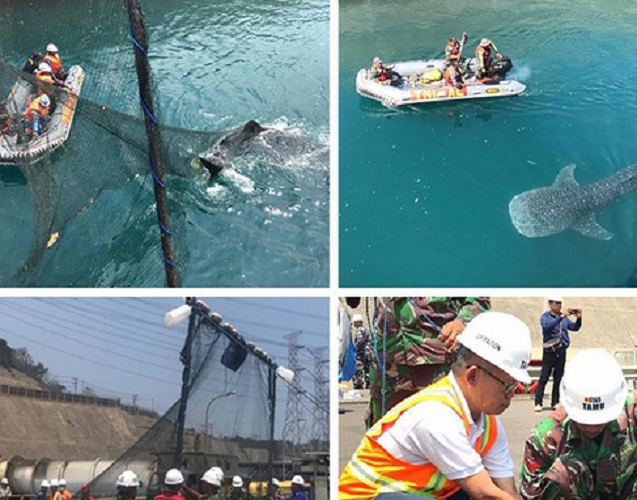 “Yeay ! Akhirnya hiu paus yang terjebak di kanal PLTU Paiton berhasil diselamatkan