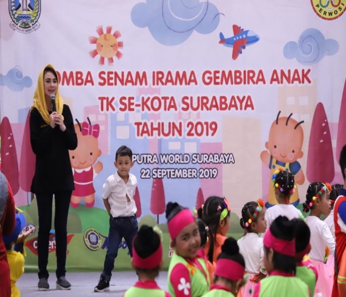 Surabaya, Nawacita – Guna memasyarakatkan olahraga dan mengolahragakan masyarakat, Pengurus Provinsi Persatuan Wanita Olahraga Seluruh Indonesia (Pengprov Perwosi) Jawa Timur menggelar lomba senam irama gembira anak TK se – Kota Surabaya.