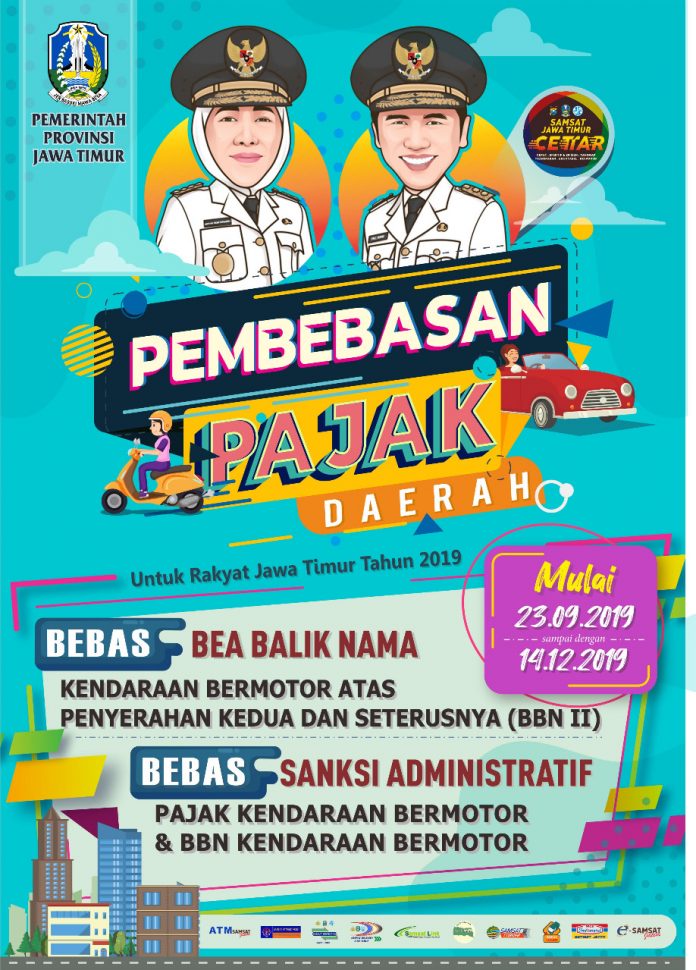 Program pembebasan sanksi administratif pajak kendaraan bermotor ini sendiri merupakan kado hari jadi ke-74 Provinsi Jawa Timur yang jatuh pada tanggal 12 Oktober 2019 mendatang.