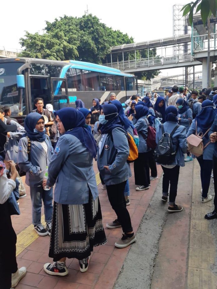 “Kami berangkat jam 2 pagi. Kami diturunkan di sebelah sana sama bus,” ucap mahasiswa itu.