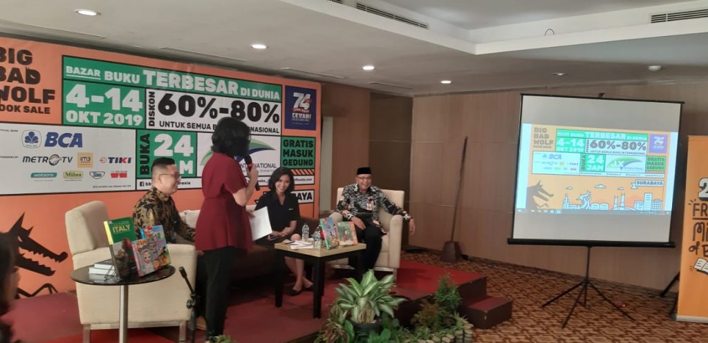 Surabaya, Nawacita – Untuk keempat kalinya Surabaya ditunjuk menjadi tuan rumah penyelenggaraan Bazar Big Bad Wolf 2019. Bazar Buku terbesar ini menjadi satu rangkaian acara Ulang Tahun Provinsi Jawa Timur ke-74.