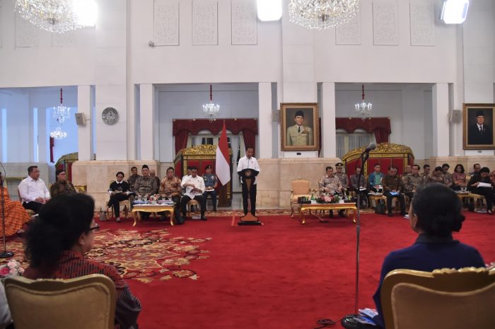 Jakarta,Nawacita – Presiden Joko Widodo menyampaikan apresiasi dan ucapan terima kasih kepada seluruh jajaran Kabinet Kerja atas kerja keras yang telah dilakukan selama lima tahun ke belakang. Bersama dengan jajarannya, Kepala Negara pada Kamis, 3 Oktober 2019, menggelar sidang kabinet paripurna dengan bahasan evaluasi pelaksanaan Rencana Pembangunan Jangka Menengah Nasional (RPJMN) 2014-2019 dan persiapan implementasi APBN 2020 di Istana Negara, Jakarta.
