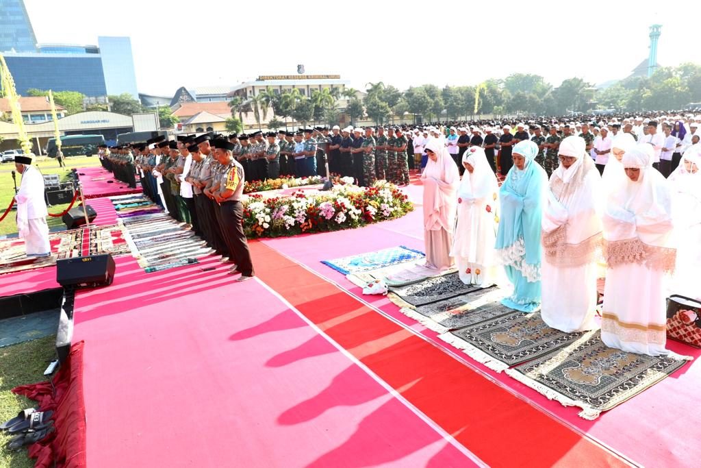 Surabaya, Nawacita –Â (6 Oktober 2019) – Forum Koordinasi Pimpinan Daerah (Forkopimda) Jawa Timur bersama ribuan warga menggelar Shalat Istisqa atau shalat minta hujan di Lapangan Mapolda Jatim, Minggu (6/10).