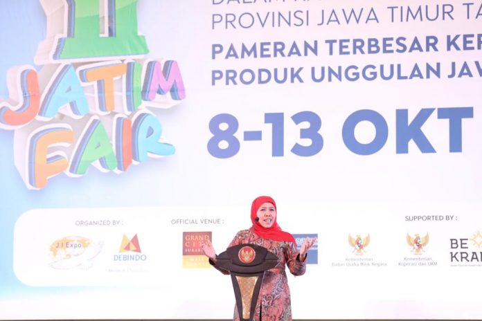 SURABAYA, Nawacita – Gubernur Jawa Timur, Khofifah Indar Parawansa membuka Jatim Fair 2019, Selasa (8/10). Event yang digelar di Grand City Mall Surabaya tersebut merupakan bagian dari rangkaian Hari Jadi Jatim ke-74. Event pameran terbesar di Indonesia Timur tersebut digelar hingga 13 Oktober 2019 mendatang dan mengambil tema “Semarak Belanja Hiburan dan Rekreasi Keluarga”.