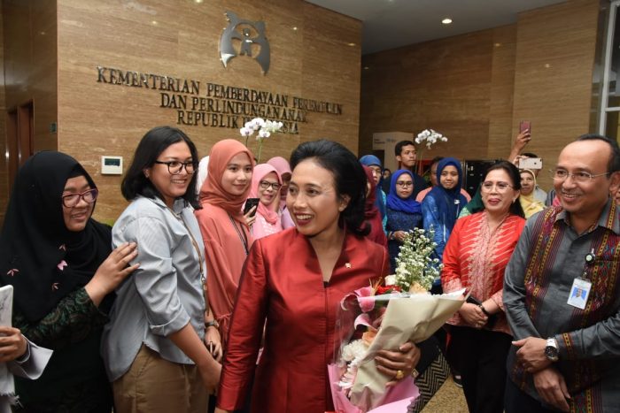 Jakarta,Nawacita. (23/10) – Setelah resmi dilantik Presiden menjadi Menteri Pemberdayaan Perempuan dan Perlindungan Anak RI periode 2019 – 2024, I Gusti Ayu Bintang Darmawati atau yang lebih dikenal Bintang Puspayoga langsung mendatangi kantor Kemen PPPA. Disambut para Deputi, Staf Ahli Menteri, dan pegawai, Menteri yang piawai bermain tenis meja ini memimpin rapat perdana dengan Sekretaris Kementerian dan para Deputi.
