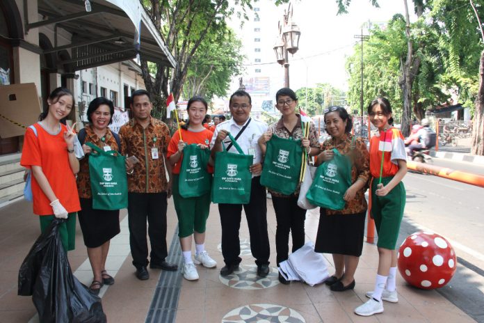 Surabaya, Nawacita- Dalam rangka mengajak masyarakat menjaga lingkungan hidup dengan cara mengurangi penggunaan kantong plastik, PT KAI Daop 8 Surabaya bekerja sama dengan SMP Santa Maria Surabaya, mengadakan acara Gerakan Peduli Lingkungan di Stasiun Surabaya Gubeng, Kamis (24/10/2019).