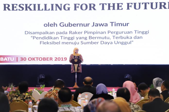Kota Batu, Nawacita – Gubernur Jawa Timur Khofifah Indar Parawansa menyebut perkembangan teknologi, masuknya era revolusi industri 4.0 dan kemajuan dunia global ke depan mendorong adanya pergeseran ketenagakerjaan.