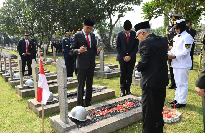 Jakarta, nawacita – Presiden Joko Widodo pada Minggu pagi, 10 November 2019, memimpin upacara Peringatan Hari Pahlawan tahun 2019. Upacara digelar di Taman Makam Pahlawan Nasional Utama Kalibata, Jakarta Selatan.