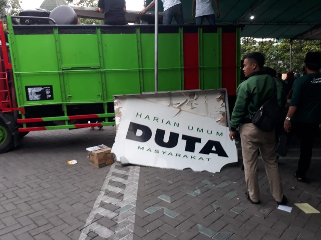 Selesai pembacaan amar putusan, juru sita pengadilan pun masuk ke dalam Gedung Graha Astranawa yang dikawal ketat pihak kepolisian. Upaya jurusita ini pun dihadang oleh kubu eks Ketua DPW PKB Jatim. Aksi saling dorong pun tak terhindarkan, dan beberapa orang yang dianggap menghalangi upaya eksekusi langsung diamankan oleh polisi, untuk menghindari bentrok antara dua kubu.