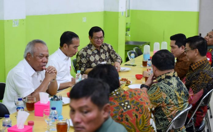 Tiba di rumah makan tersebut, belum ada meja khusus yang telah disiapkan, Presiden bersama Gubernur Kalimantan Utara Irianto Lambrie, Sekretaris Kabinet Pramono Anung, Menteri PU dan Perumahan Rakyat Basuki Hadimuljono, Menteri Dalam Negeri Tito Karnavian, Menteri BUMN Erick Thohir, dan Staf Khusus Presiden Fadjroel Rachman menantikan santap malam dimasak terlebih dahulu.