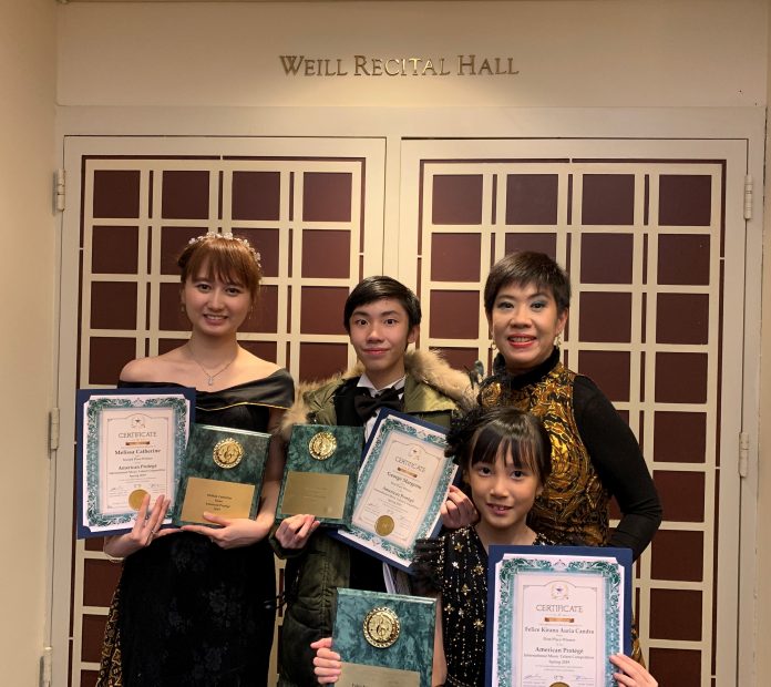 “Pada awalnya mereka membuat rekaman yang kami kirimkan ke panitia American Protege International Music Competition di New York, dan akhirnya ketiga pianis ini meraih juara pertama, dan diundang untuk tampil di Carnegie Hall,” jelas Sienny Debora, musisi dan pengajar piano yang melatih dan membimbing para pianis ini selama bertahun-tahun.